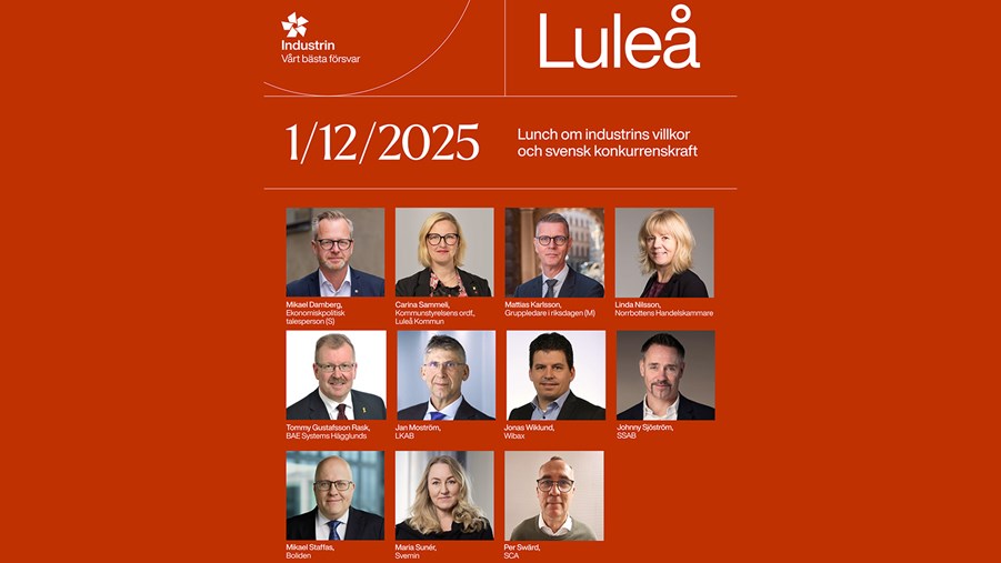 Industrin – vårt bästa försvar är ett samarbete mellan IKEM, Jernkontoret, Skogsindustrierna, Svemin och Teknikföretagen för att lyfta industrins villkor på den politiska agendan, med skarpa förslag för ett bättre företagsklimat i centrum. Den 1 december bjuder vi in till en lunch med samtal och mingel i Luleå om industrins samhällsbidrag och villkor – nationellt och för norra Sverige.
