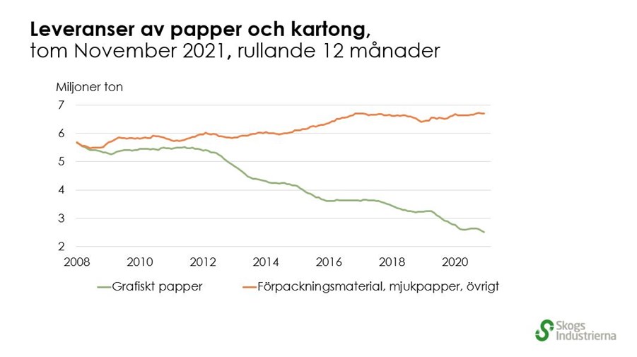 Efterfrågan på förpackningspapper är stor och intresset för biobaserade material från skogen ökar när både producenter och konsumenter väljer papper framför plast. Inom näthandeln märks ökad efterfrågan på pappersbaserade förpackningar och även produktion av papperskassar samt säckpapper, som används till förpackningar till cement, konstgödsel och produkter som socker, mjöl och hundmat, har ökat.