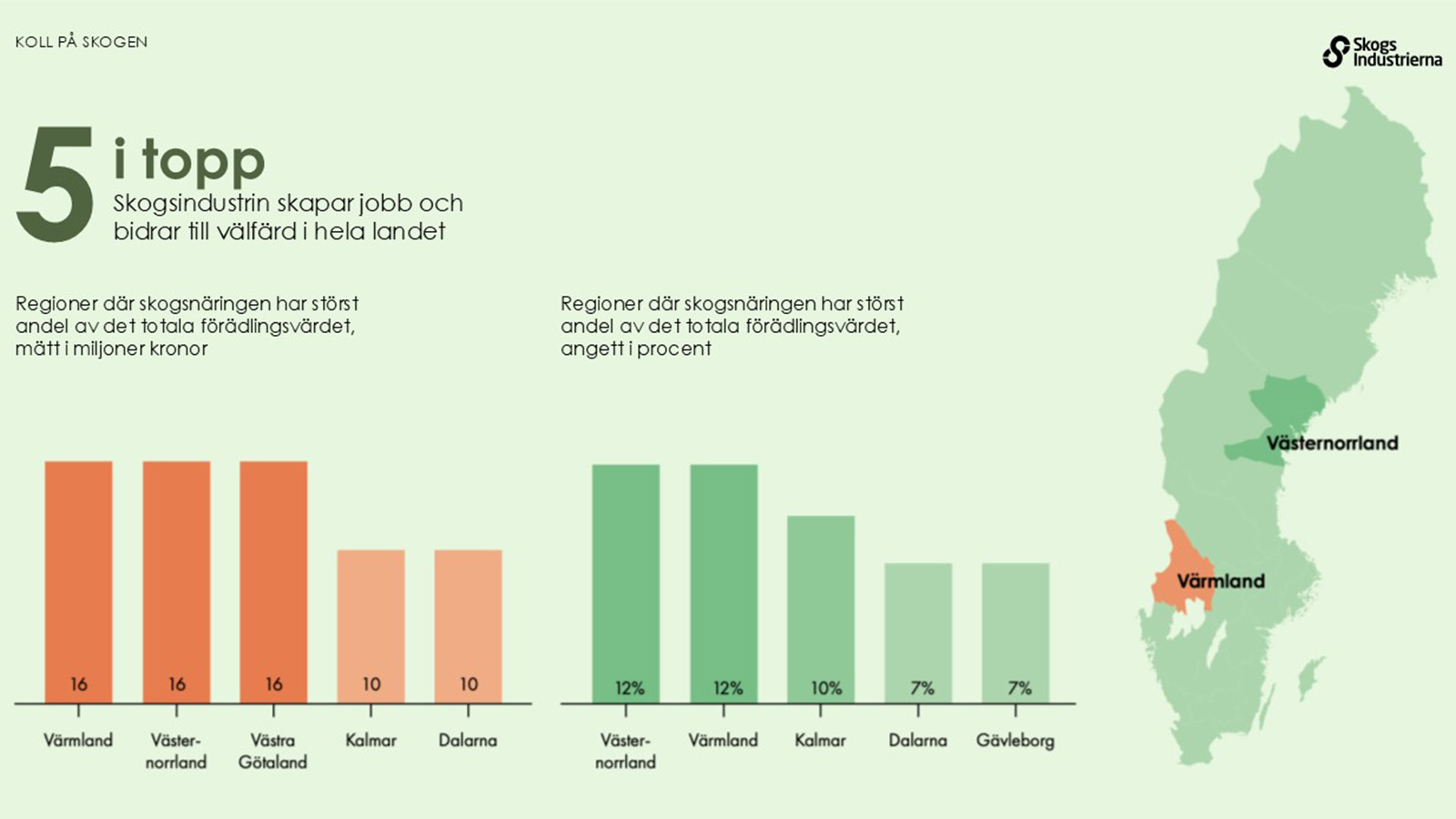 Statistik som belyser skogsindustrins betydelse för Sveriges ekonomi och välfärd.