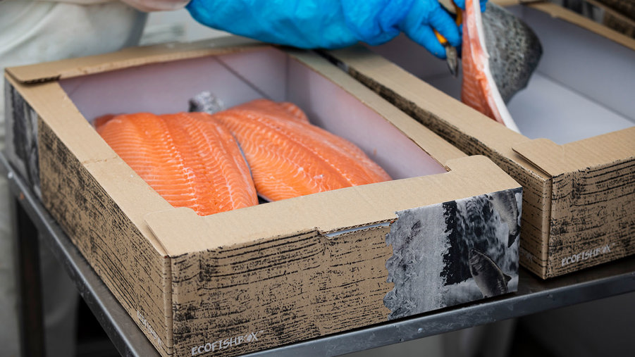 Hur kan fiskens väg från hav till tallrik blir mer cirkulär? Det var frågan när EcoFishBox togs fram – förpackningen för färsk fisk och skaldjur, till största delen gjord av återvinningsbar, vattentät wellpapp.