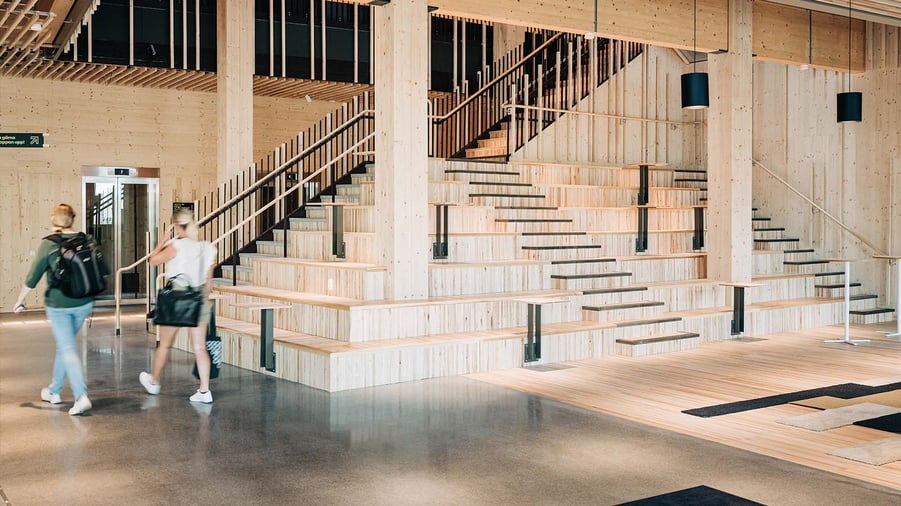 – De som jobbar här eller besöker oss brukar nämna att de trivs väldigt bra och träet är absolut en av orsakerna bakom det, säger Jonas Wahlström. Förutom att det är estetiskt tilltalande och doftar gott, så har det även en lugnande och avstressande effekt.