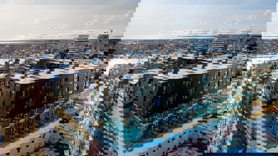 Mitt i centrala Umeå, ovanpå gallerian Utopia, har en påbyggnad i trä förändrat stadens siluett. De 49 lägenheterna bildar tillsammans ett nytt kvarter som lever sitt eget liv.