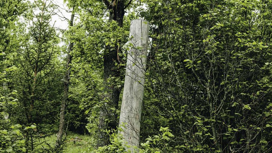 Det här är inte ett träd som knäckts av vinden utan en tre meter hög högstubbe som lämnats kvar vid skogsskörd. I cirka 15 års tid har den huserat insekter, skalbaggar och fåglar. Högstubbar är ett sätt för skogsbruket att öka mängden död ved i skogarna. Det kan hända att du även gått förbi en lite kortare stubbe, på 1,3 meter, där en ormvråk eller annan fågel gärna sitter och spanar efter sorkar. Det är en kulturstubbe som skogsägaren lämnat kvar runt en kulturlämning för att skydda lämningen.