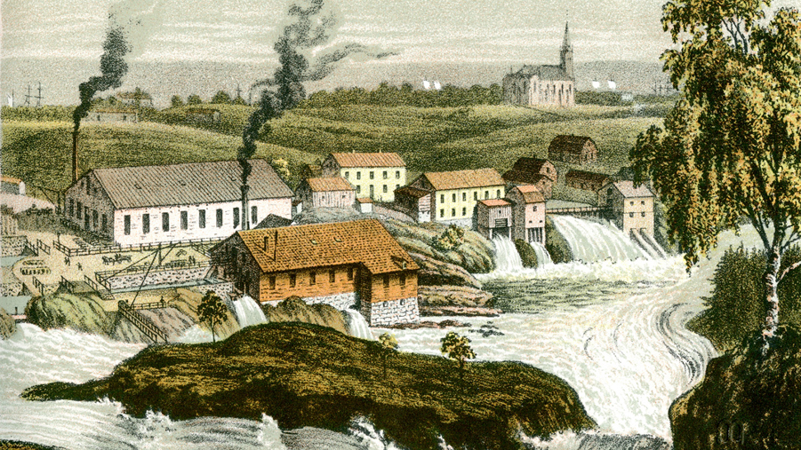 På Önan i vattenfallen i Trollhättan byggdes Sveriges första träsliperi 1857.